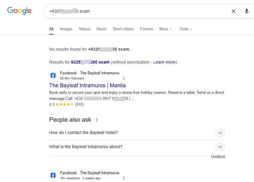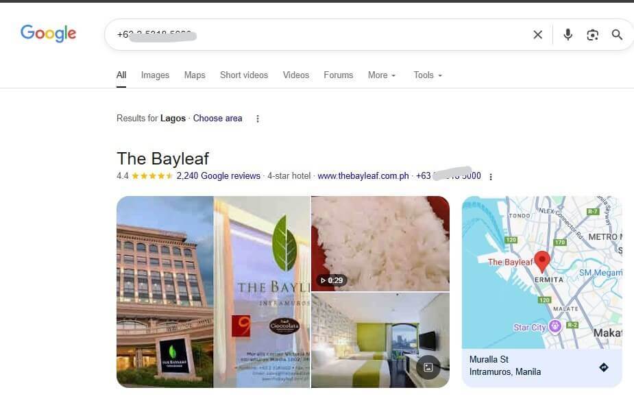 - Go to Google search and type in the phone number (with the Philippines country code).