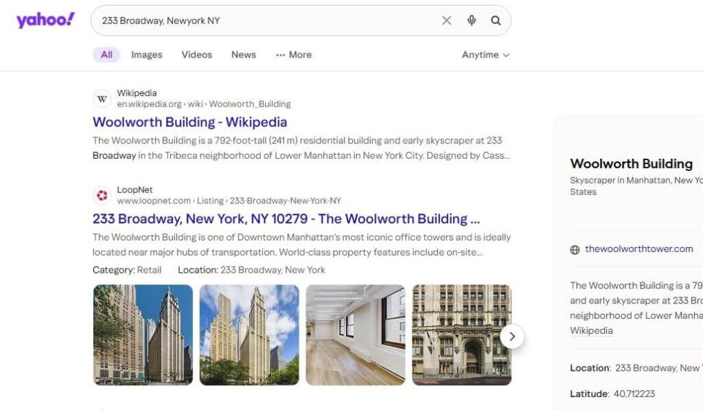 - Si vous avez leur adresse postale, copiez-la et collez-la dans la barre de recherche Yahoo pour trouver les sites où ces informations sont publiques.