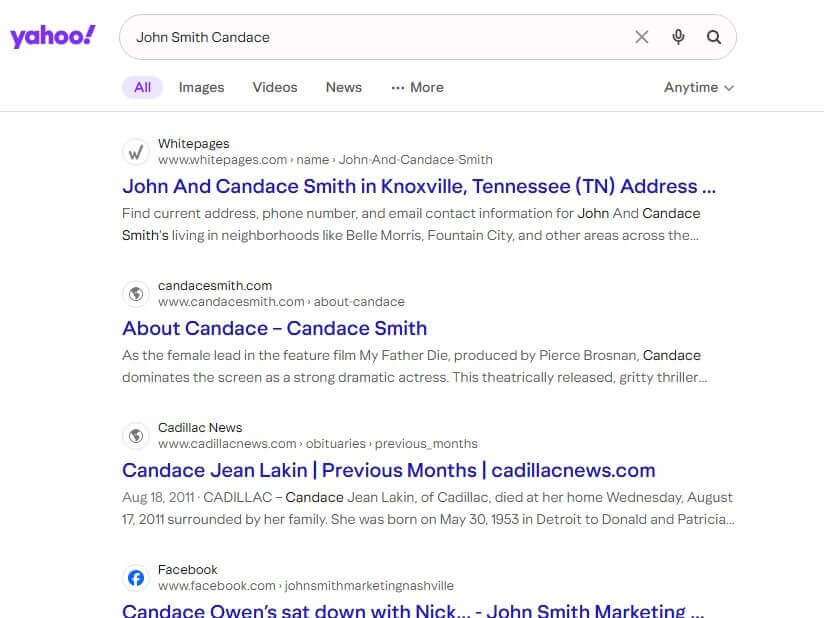 En réalité, Yahoo proposait autrefois un annuaire classique, édité par des humains (people.yahoo.com), qui incluait une section de recherche de personnes. À l'époque, il suffisait de saisir des informations clés comme le nom, le numéro de téléphone ou l'adresse e-mail de la personne, et l'outil parcourait l'annuaire pour trouver les profils associés. Ce moteur de recherche de personnes de Yahoo n'existe plus. Cela dit, il existe d'autres moyens d'effectuer des recherches sur Yahoo, ainsi que d'autres moteurs de recherche de personnes.