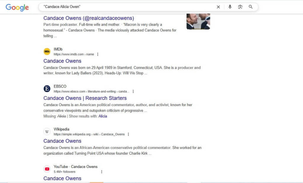- Soyez également attentif au « panneau de connaissances » que Google peut générer, surtout si la personne que vous cherchez est une personnalité connue.