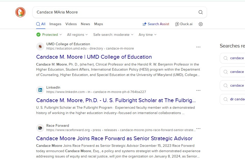 DuckDuckGo est une excellente alternative, surtout si la protection de votre vie privée est importante. Contrairement à Google, il ne suit pas vos recherches et ne crée pas de bulles de filtres basées sur votre historique de saisie. Ainsi, les recherches de vos contacts peuvent donner des résultats plus neutres et objectifs. De plus, les mêmes opérateurs et techniques de recherche fonctionnent ici pour trouver un maximum d'informations.
