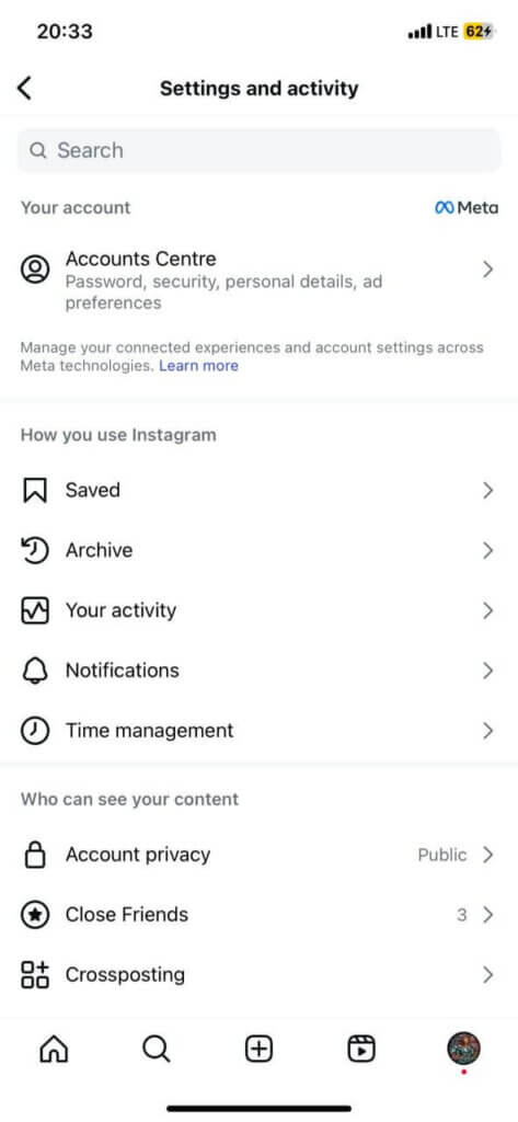 Many Indonesians connect their phone numbers to their social media accounts. Hence, you can also use social media apps to identify them. That said, you can always search directly using the search bars on your social media apps. However, it’s much better to store the phone number and sync your contact list. Here’s how, using Instagram as an example: