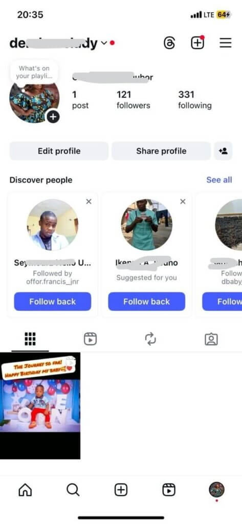 - After that, go back to your profile page and click on “See all” next to the Discover people tab. Instagram would automatically suggest new people based on your contact list.