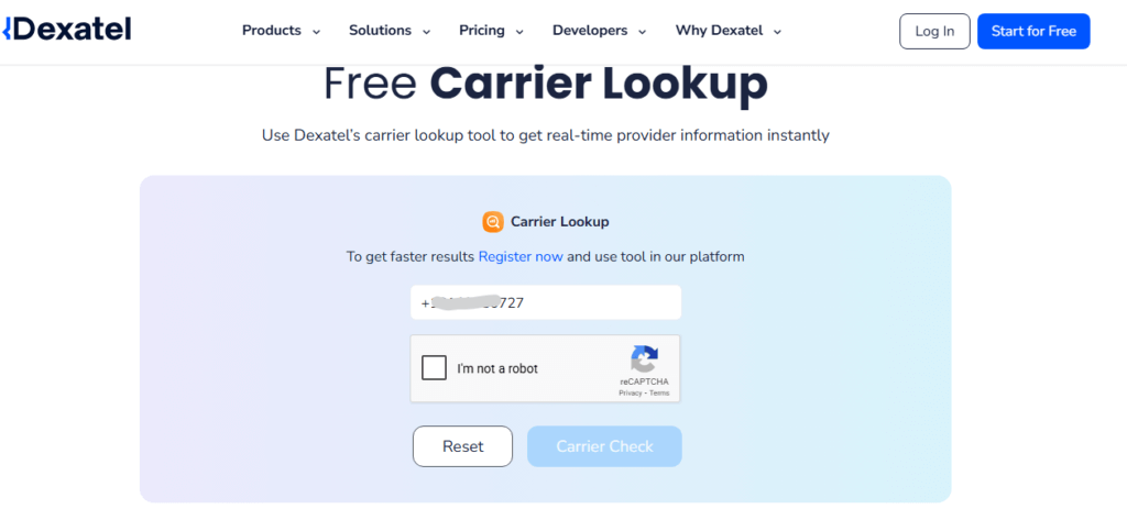 Dexatel is also a fantastic phone number carrier lookup. On the website, you can either directly look up a single number or multiple numbers, which is suitable for business purposes. Plus, it’s ideal for checking out international phone numbers.  Here’s how it works: