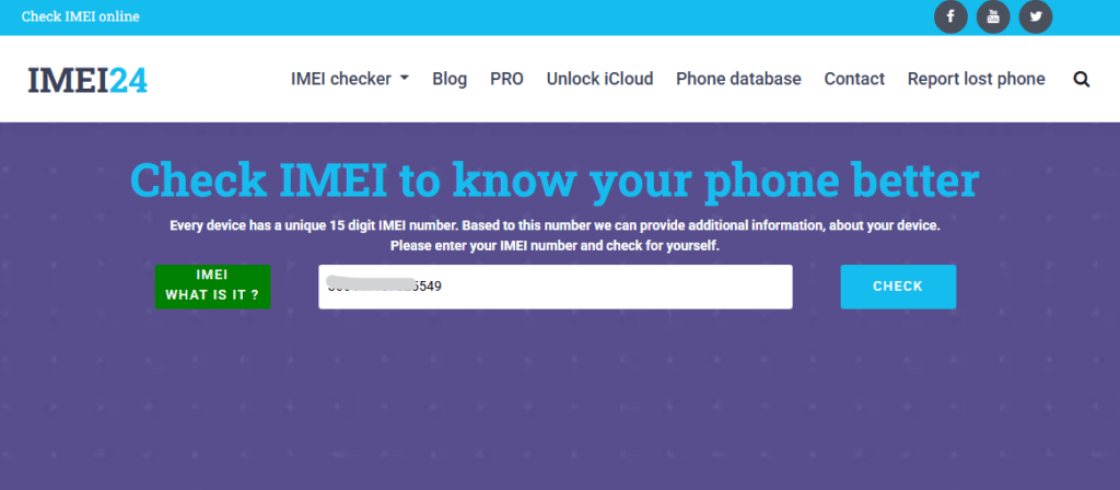 • Enter the 15-digit IMEI number and hit the “Check” button.