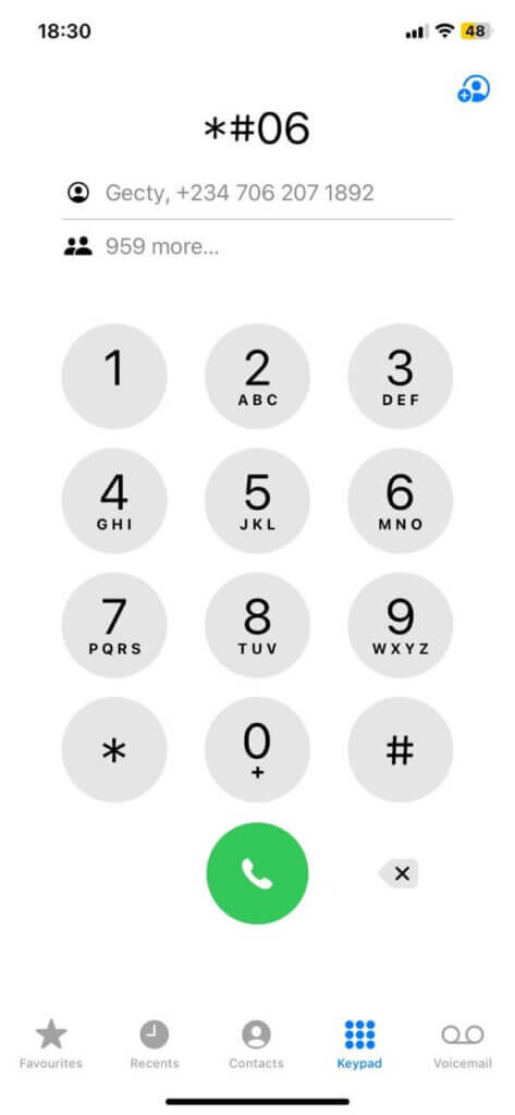 The fastest method is to dial the universal IMEI short code to display it on your screen. This method depends on access to your smartphone. We also recommend that you take a screenshot of the IMEI number information and store it in your cloud storage in case your device gets lost or stolen. That said, also note that this method only works on iPhones. You can’t dial the code on iPads since there’s no phone dialer application. Also, if your smartphone has dual SIMs, you’ll see two IMEI numbers. Here’s how to use this method: