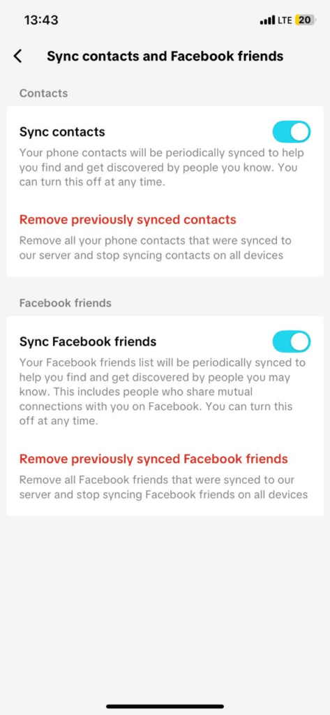 • Mark the buttons for “sync contacts” and “sync Facebook friends”