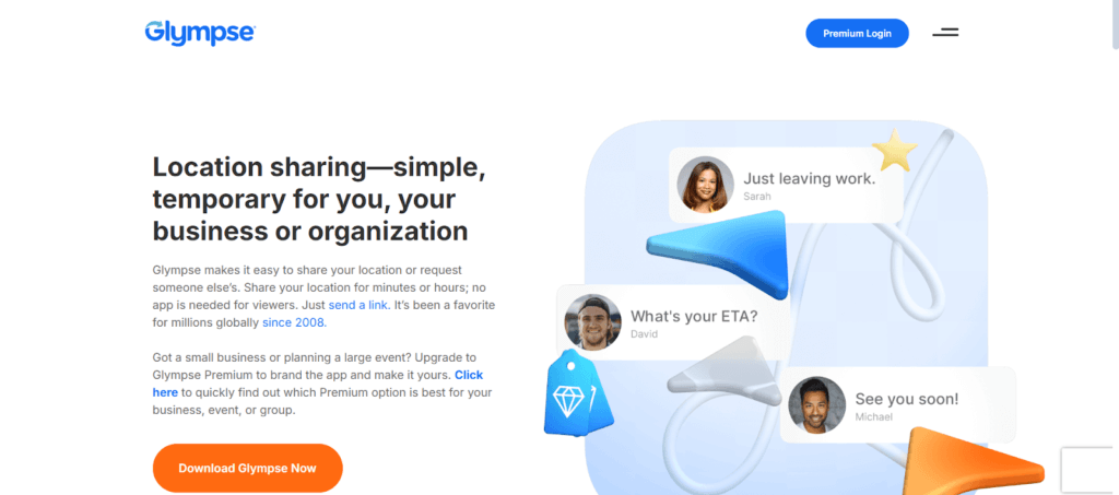 Bir bakış Kısa süreli ve anında konum paylaşımında uzmanlaşmıştır. Kalıcı olarak takip etmek yerine, kullanıcıların belirli bir süre içinde canlı konumlarını paylaşmalarını sağlar. Toplantılar düzenlemek, seyahat bildirimleri göndermek veya varışınızı bildirmek için mükemmeldir. Paylaşılan bağlantı tüm tarayıcılarda çalışır, bu nedenle alıcıların uygulamayı yüklemesine gerek yoktur.